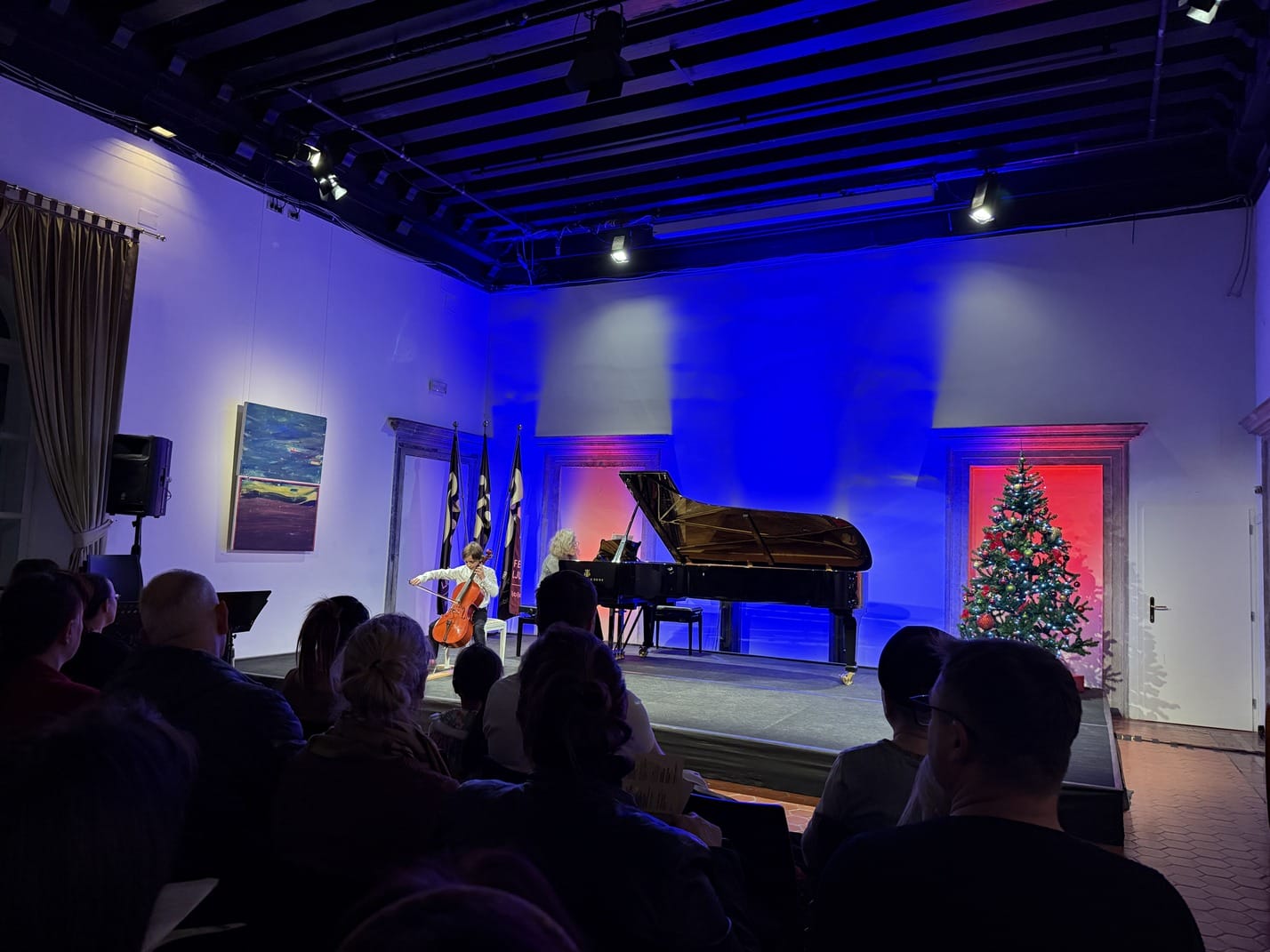 Viteška dvorana, s svojo mogočno arhitekturo in dobro akustiko, je bila popolno prizorišče za nastop naših mladih glasbenikov. Učenci so z veliko navdiha stopili na oder in pokazali kaj so pridno trenirali. Njihovi nastopi so med občinstvom ustvarili prelepe glasbene trenutke – od nežnih božičnih melodij do zahtevnejših skladb, ki so razkrivale njihovo muzikalnost.